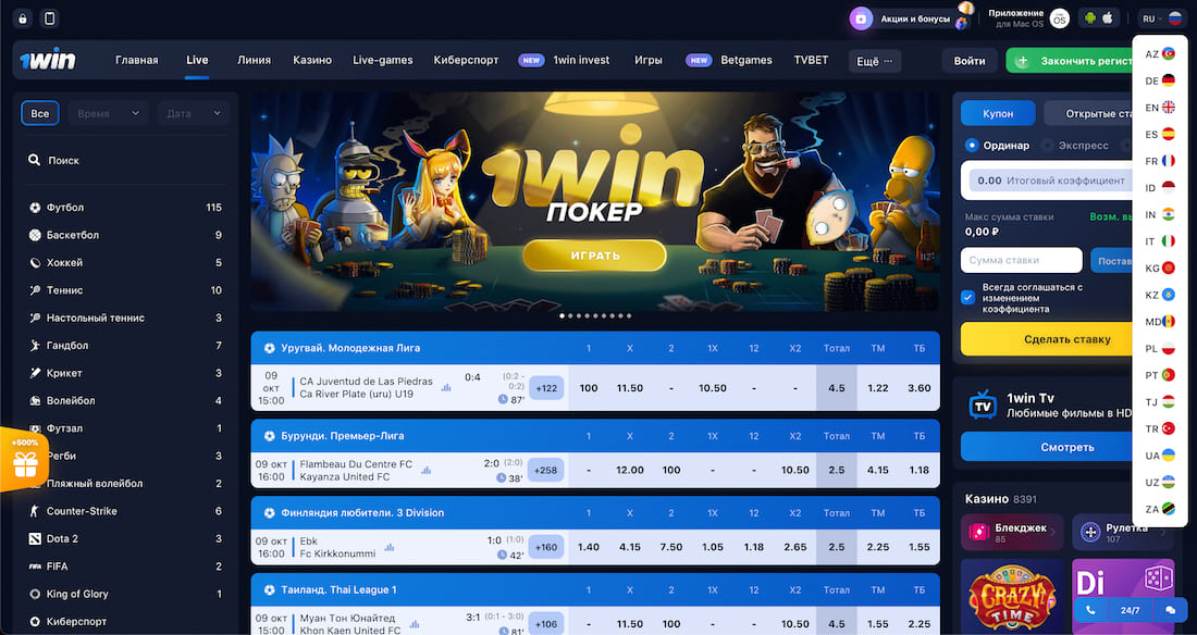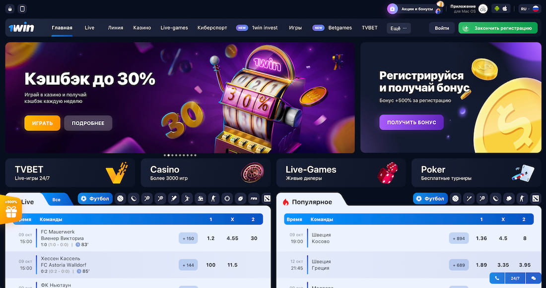 1Win – известная букмекерская контора, которая предлагает игрокам достаточно большое количество различных азартных развлечений. Здесь можно не только делать ставки на спорт, но также играть в игровые автоматы, игры с настоящими букмекерами и другими игроками. На официальном сайте представлены практически все происходящие популярные мероприятия из мира спорта.